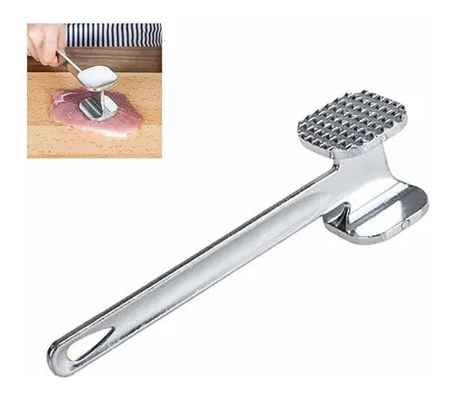 Martillo ablandador profesional de construcción robusta, diseñado para preparación de carnes y proteínas en cocinas corporativas y servicios de catering especializado. Cabezal de doble cara que proporciona versatilidad en técnicas de ablandamiento, mejorando textura y consistencia de ingredientes.